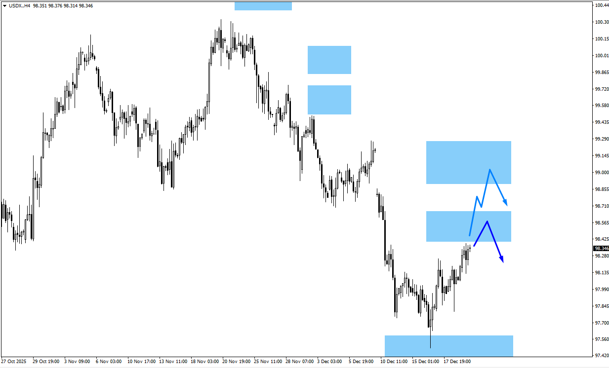 - Resistance sits near 98.55, with scope toward 99.10 if momentum holds.