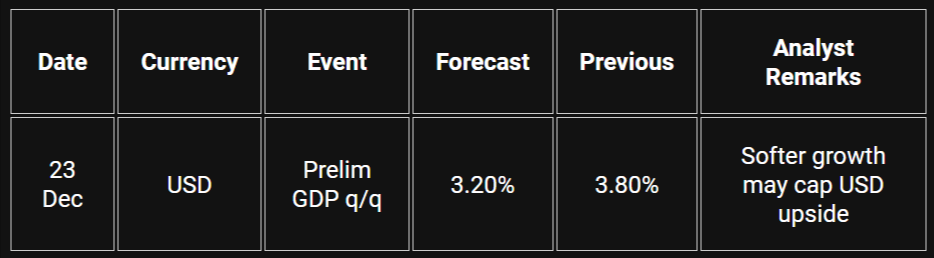 Focus now turns to US growth data and how the dollar responds. A softer GDP outcome may limit USD upside and support commodities and risk assets, while thin holiday liquidity increases the risk of exaggerated moves around key levels.Publication date: